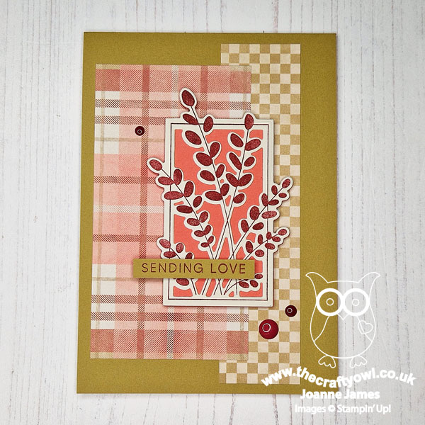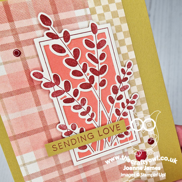 Timeless Plaid - Designer paper was an obvious choice for all those layers, however finding something with three different patterns that coordinated but didn't take away from my stamped image was tricky. In the end I settled on the Timeless Plaid papers, using two contrasting plaids for the bottom layers and taking my colour cues from the multi-coloured plaid. It makes for a rather unusual colour combo - (retired) Wild Wheat, Calypso Coral and Cherry Cobbler, but I think it looks OK. I don't love it (that's probably because it includes Wild Wheat!) but it's OK.