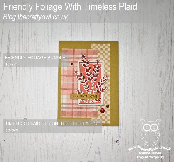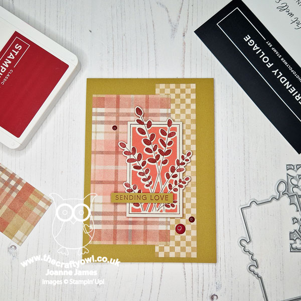 Friendly Foliage - I have had my Friendly Foliage bundle out on my desk, waiting for an opportunity to showcase the main foliage stamp, so decided I'd try it with this sketch. This is a stamp that doesn't disappoint: the image is crisp and clean and the dies in this set are just fabulous, with the die for this main stamp set cutting out both the outline and the internal pieces too, which makes it great for layering. There are some great sentiments in this stamp set too.