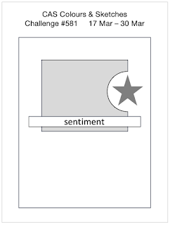 It's Tuesday and time for a new challenge over at CAS Colours & SketchesThis week's challenge is a sketch challenge and I have a cutaway rectangle with a focal point in the space and an overlaid sentiment: