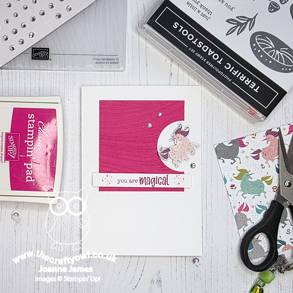 For my card today I wanted to use up one of the unicorns I fussy cut from the retired Myths & Magic designer series paper that I had leftover from my Paper Players card a couple of weeks ago - it was just the right size for my focal image: