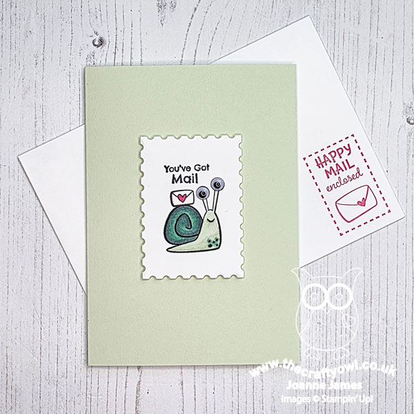 Addicted To CAS have the code word of 'postage' and I immediately thought of my retired 'Snailed It' stamp set for a suitably themed card - take a look at what I came up with: