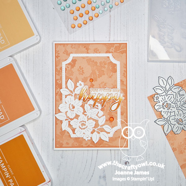 Autumn Beauty Colours - You may think of sunflowers as a summer flower, and you'd be right - but it is one of those blooms that transitions through to autumn/fall and in fact there is a variety of sunflower called 'Autumn Beauty' that has the most amazing yellow and rust coloured petals - just the look I was trying to capture in my card today. I experimented with lots of colour combinations, cardstocks and techniques, before settling on Crushed Curry and Cajun Craze inks, applied with sponge daubers to the petals and leaves/stems of my sunflowers on the debossed side of a piece of Crushed Curry cardstock (working on white didn't give the same yellow hue that I wanted). I then dragged a Cajun Craze inkpad across the whole of the cardfront to fill the gaps with solid colour:
