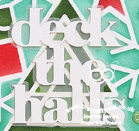 I used all of the Sunday Stamps colours except black on my card today, adding with my trusty blending brushes (I used retired Gumball Green as my other green that isn't shown below). I absolutely love this layering stencil, choc full of holiday images (it includes baubles - in fact, I even made mine a red one for Silke's challenge over at TicTacToe - I went down the first left hand column of ornament/red/Christmas sentiment - although my bauble did get chopped in half as I made my cards, so I hope it still counts!) and it's HUGE - meaning you can make two cards in one sitting - bonus! I paired mine with a couple of diecut sentiments from the Big Type Greetings Dies, also by Kristina Werner: