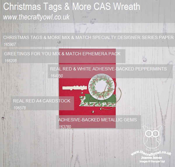 Christmas Tags & More - The Christmas Tags and More papers are full of pretty festive patterns, including a number of sheets featuring a variety of diecuts. I chose one featuring a wreath as my focal point; I added some peppermint embellishments and a gold twine bow for a little added festive detail: