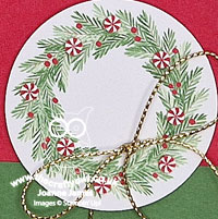 This is a great sketch for easy cards, with the opportunity to use up scraps for those banners and choose a single focal point. I used a circle in the sketch, but your focal point can be any shape you like. I was playing with my Christmas Tags and More papers and found the perfect focal point - take a look:
