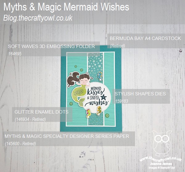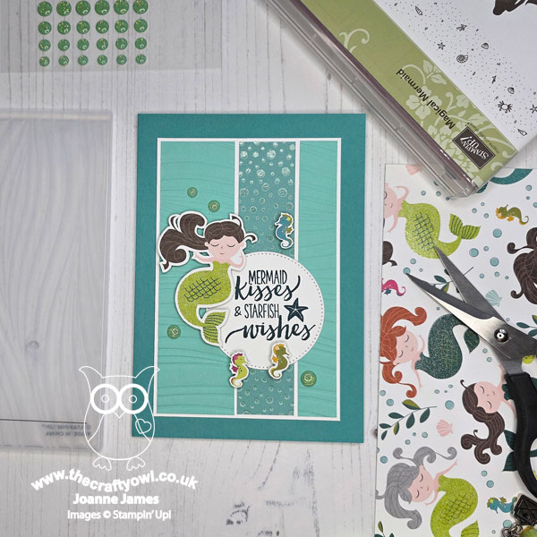 Myths and Magic - So I had a stash of retired Myths & Magic designer series paper that I had preserved and decided this was a good time to cut into some! I spent a good few evenings fussy cutting mermaids and the teeny-tiny seahorses you can see on today's card, but also unicorns, knights and dragons from the other sheets too. I paired my mermaid with a sentiment from the Magical Mermaids stamp set that is also retired: