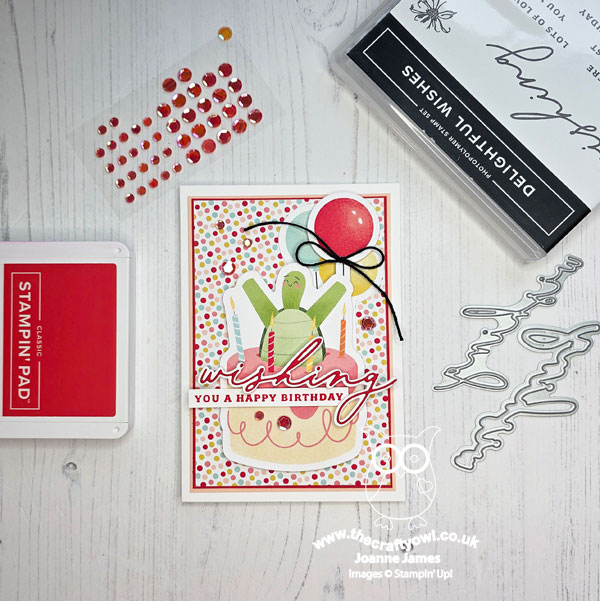 Delightful Wishes - This card really didn't need much more other than a sentiment. I used a combination from the Delightful Wishes bundle that gave me a large sentiment that would stand out, without obscuring the detail of my birthday turtle behind.