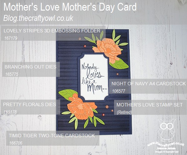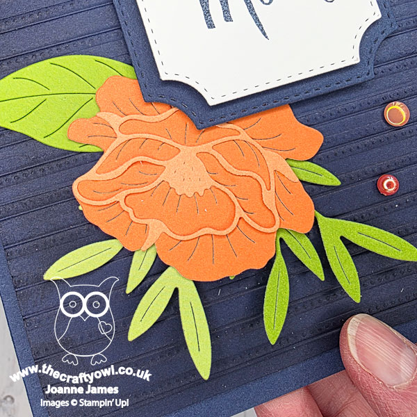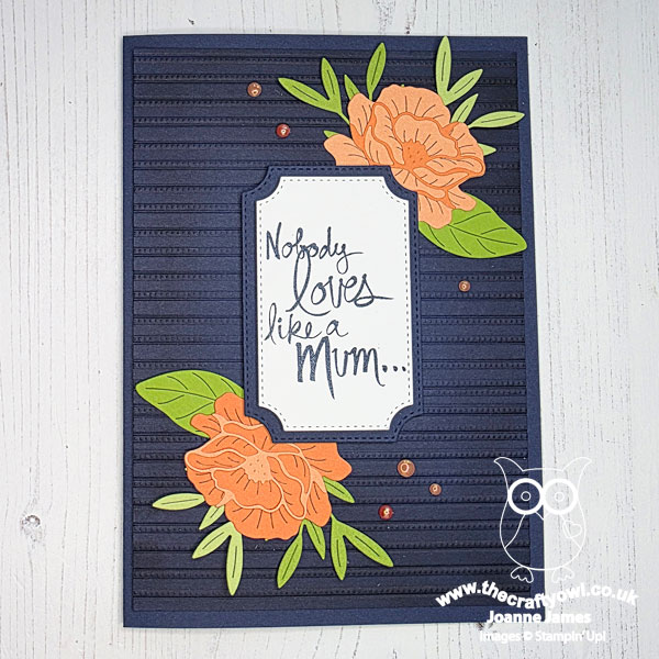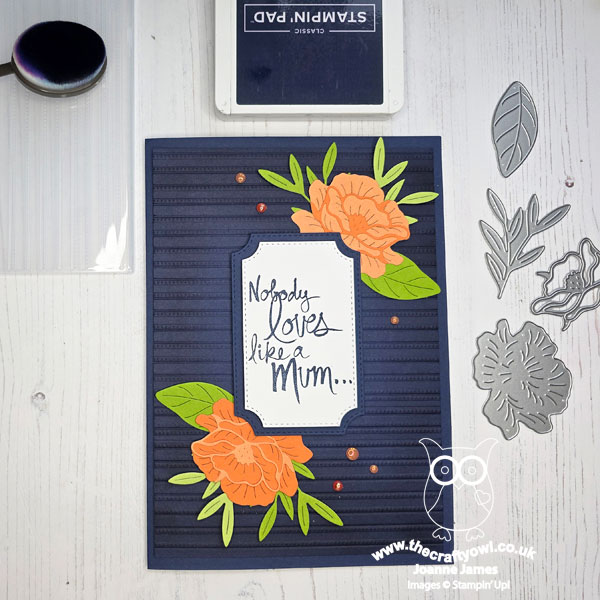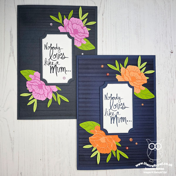 The second card is exactly the same design, but with a Night of Navy card base and Timid Tiger florals: