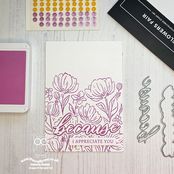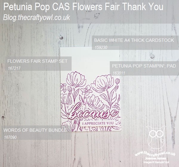 Last Chance for 2024 In Colours - Today's card is stamped in Petunia Pop, one of the 2024-26 In Colours that will be retiring next month. This is your friendly reminder that if you need reinkers, cardstock or embellishments in any of these outgoing colours, you should get them ordered before stocks run out \9which may well be before the catalogue end date). I will miss Pretty In Pink and Emerald Envy from this set - I have used both lots!