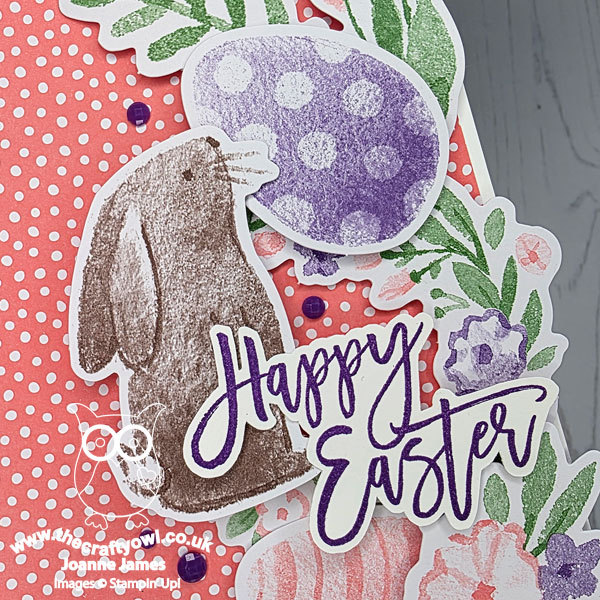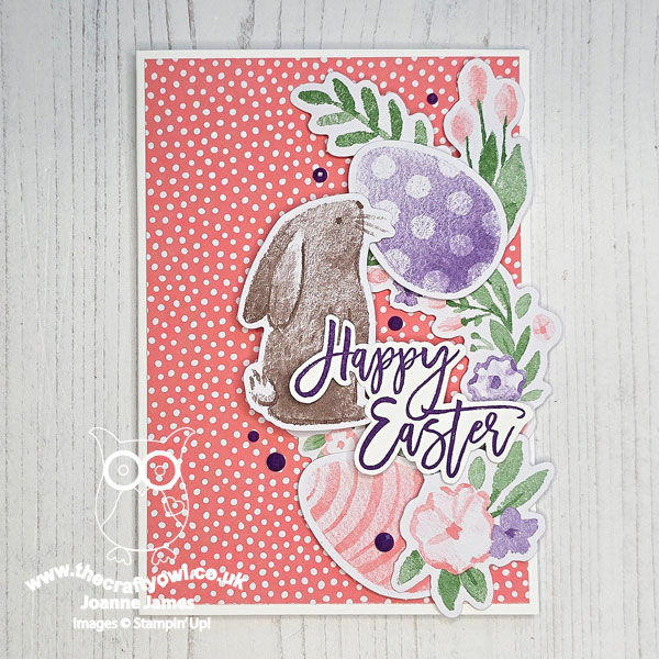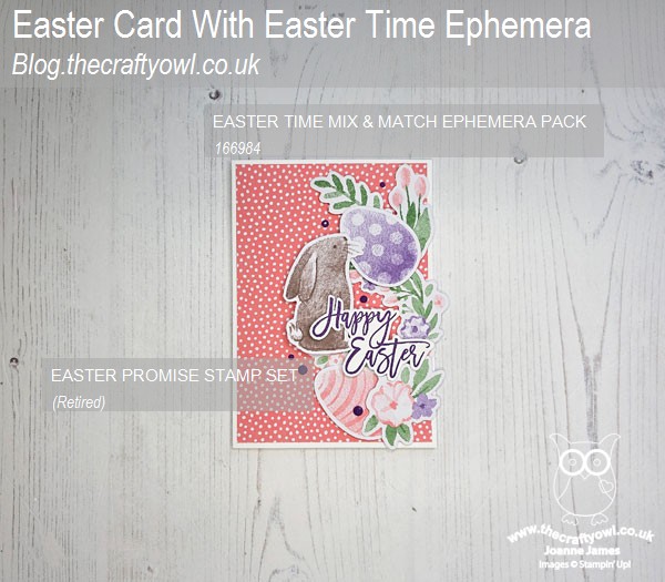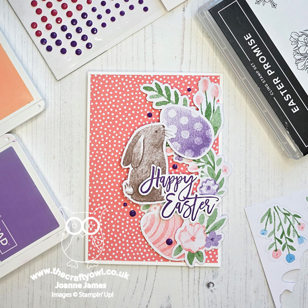 I paired a piece of retired dotty Brights designer series paper in Flirty Flamingo on a Basic White card base with a collection of of bits and pieces from the Easter Time Mix & Match Ephemera pack, along with a sentiment from the retired 'Easter promise' stamp set: