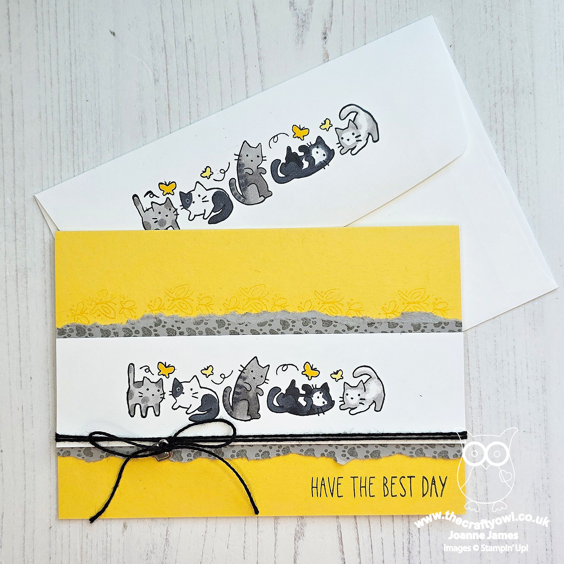 A sentiment and some black baker's twine, along with a little heart charm from my stash, completes my card. I added additional rows of kitties both inside my card and on the envelope flap too for a little extra feline decoration. This will be heading to a member of my extended team who has an upcoming birthday and I know loves this set!
